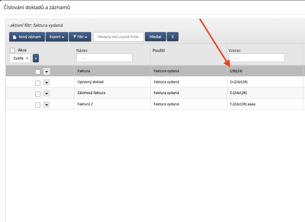 Pokud v poli "vzorec" vidíte (2R) tak je vše v pořádku a program přepne číselnou řadu sám.