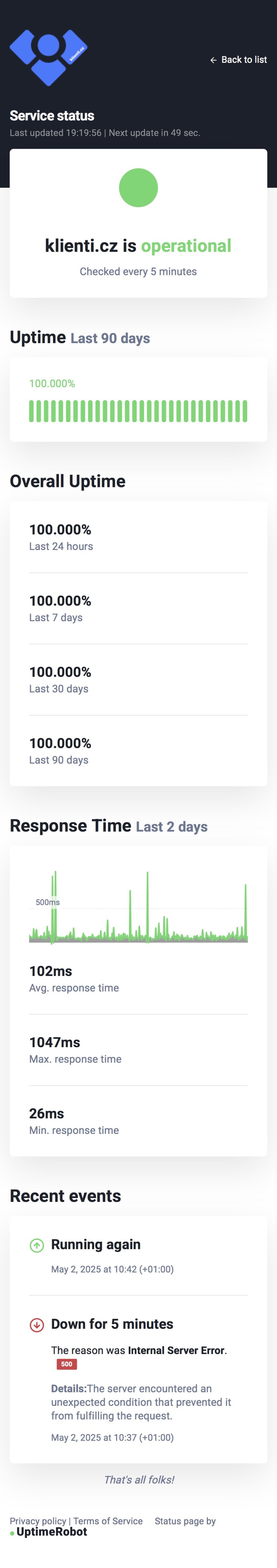 Stav serveru za posledních 90 dní: https://stats.uptimerobot.com/MRzhupQR4d/782941742